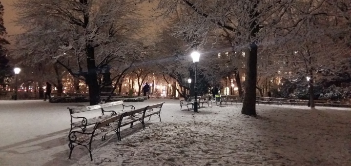 2016: Stadtpark. Es gab eine Inversionswetterlage und es fiel Industrieschnee. Die Farbstimmung ist original … keine Nachbearbeitung. 2020: G3-Einkaufszentrum … menschenleer wegen Covid-19.