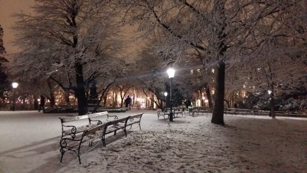 Kalenderblatt: 21. Dezember von Karl Beirl · 20. Dezember 2025 2016: Stadtpark. Es gab eine Inversionswetterlage und es fiel Industrieschnee. Die Farbstimmung ist original … keine Nachbearbeitung. 2020: G3-Einkaufszentrum … menschenleer wegen Covid-19.